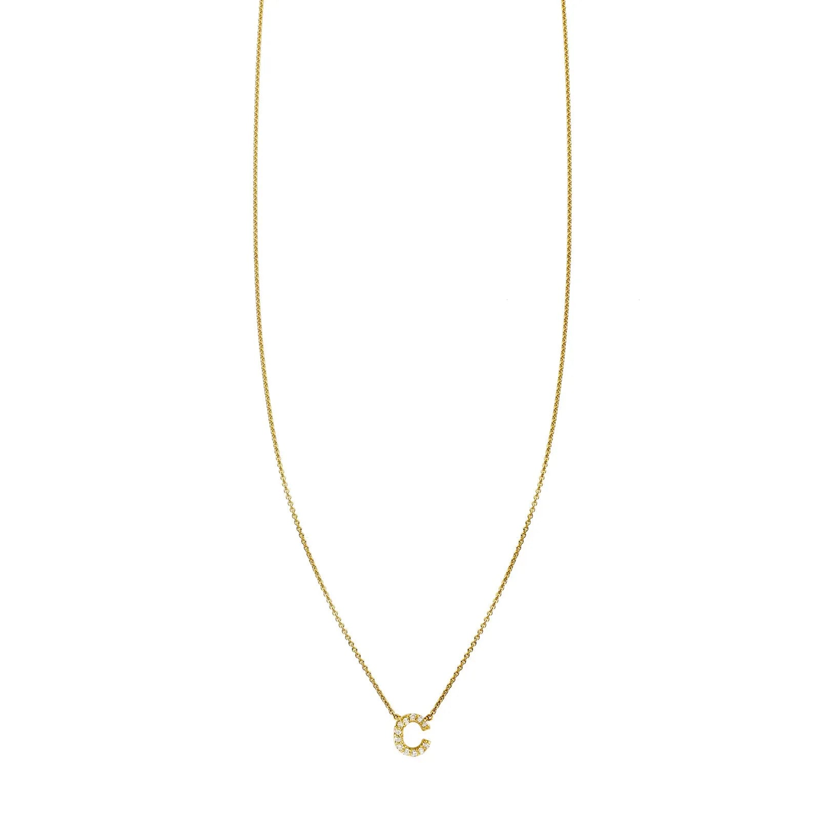 Elevate your jewelry collection with this sophisticated diamond and gold initial necklace, a beautiful piece designed for personal expression. Crafted from solid 14K gold, this luxurious letter charm necklace features your chosen initial, set with shimmering 0.9mm pave white diamonds for an elegant and eye-catching sparkle. Available in classic yellow, white, or rose gold, the necklace offers a custom chain length, making it a perfect fit for any style or occasion. The initial measures just shy of 1/4", striking a perfect balance between subtlety and sophistication. Whether worn as a daily accessory or for a special occasion, this diamond and gold initial necklace embodies charm, beauty, and elegance.